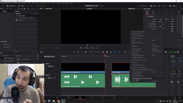 Как сделать "моно" из стерео в ДаВинчи одним кликом
