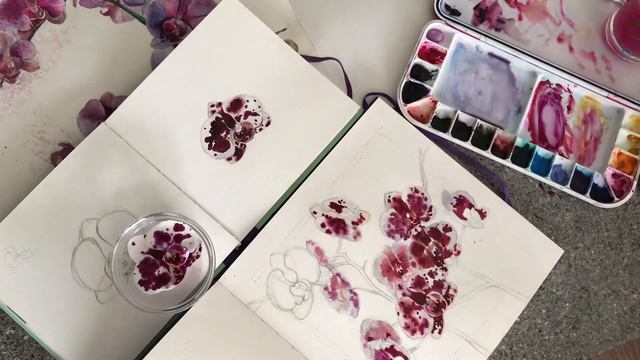 Орхидеи акварелью