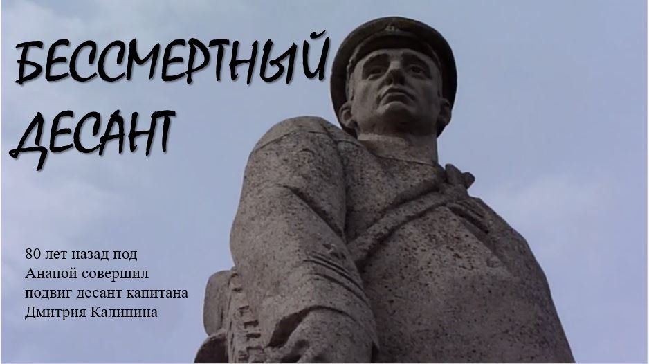 80 лет назад, под Анапой, совершил подвиг десант капитана Дмитрия Калинина. О подвигах разведчика Дмитрия Калинина среди черноморцев слагались легенды. К очередной высадке в тыл врага командир разведотряда штаба Черноморского флота Калинин готовил своих разведчиков особенно тщательно. Предстояло создать видимость высадки крупного десанта, собрать подробные данные о противнике и заминировать шоссе Анапа-Новороссийск. В ночь с 30 апреля на 1 мая отряд разведчиков в составе 35 человек под командованием капитана Калинина высадился с катеров на берег, занятый противником, близ села Варваровки, что под Анапой. О подвиге моряков-разведчиков и капитана Д.С. Калинина рассказывает презентация «Бессмертный десант». Подготовлено заведующим сектором краеведения отдела обслуживания Центральной библиотеки г. Анапа И.Ю. Бондаренко