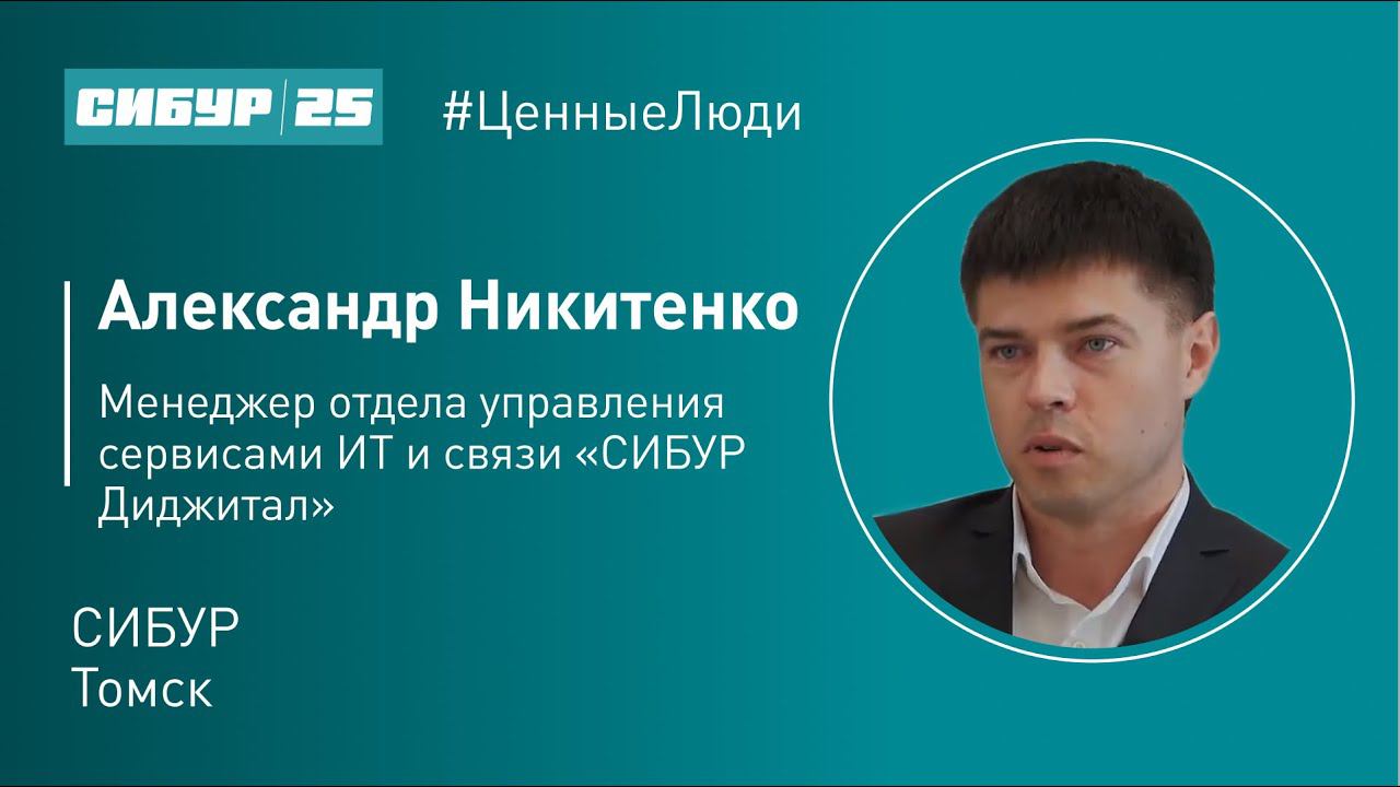 Ценные люди — серия видео к 25-летию компании о сотрудниках СИБУРа и о роли ценностей компании в их ежедневной работе. Александр Никитенко, менеджер отдела управления сервисами ИТ и связи «СИБУР Диджитал» из Томска, рассказывает о поддержке работы 24/7, разнообразии проектов, с которыми приходится сталкиваться, и командной работе на командный результат. #СИБУР #СИБУР25 #ЦенныеЛюди #нефтехимия #СИБУРdigital #ТГУ #digital #Томск #интервью #химия #полимеры #Sibur #petrochemicals #petchem #chemistry #chemicals #polymers СИБУР в социальных сетях: Facebook https://www.facebook.com/siburholding Twitter https://twitter.com/SIBURHolding Youtube https://www.youtube.com/user/SiburHolding Linkedin https://www.linkedin.com/company/sibur Вконтакте https://vk.com/career.sibur Instagram https://www.instagram.com/sibur_holding/ Все самое актуальное о нашей компании на сайтах: Cайт СИБУРа https://www.sibur.ru/ Цифровизация СИБУРа https://sibur.digital/ Бизнес-практики СИБУРа https://www.businesspractices.ru/ СИБУР клиентам https://magazine.sibur.ru Корпоративный журнал https://www.sibur.ru/press-center/magazin/ Формула Хороших Дел https://www.formula-hd.ru/ Карьера в СИБУРе https://career.sibur.ru/