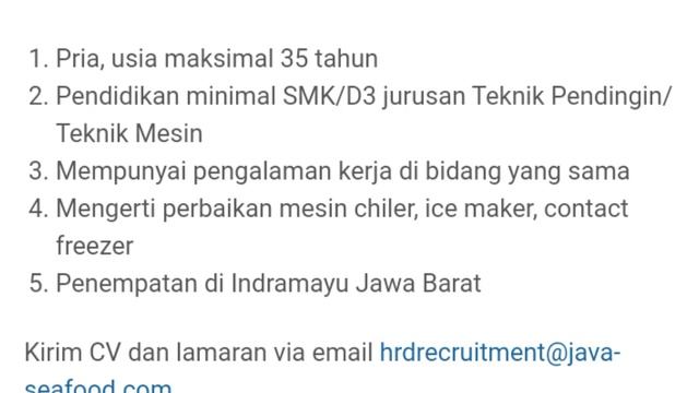 Loker Terbaru Hari ini PT Java Seafood | Lowongan Kerja hari ini