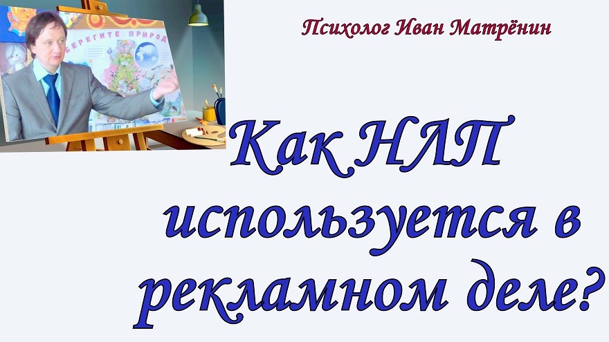 Ой как много мифов, относительно НЛП. Среди мифов большую часть занимает манипулятивность нейро-лингвистического программирования. Конечно хочу отметить, что это не НЛП манипулятивное направление. Скорее есть люди, которым нравится заниматься манипуляцией и для этого они используют всё, что возможно. НЛП высокоэффективная коммуникативная техника и конечно её, в этом смысле, стороной не обходят. Используют НЛП и в рекламе. Некоторые нюансы использования именно в этих целях я расскажу здесь. Смотрите подробнее, в этом видео. Приятного просмотра! Видео можно посмотреть на моём канале в YouTube - http://www.youtube.com/c/ПсихологИванМатрёнин. Ссылка на это видео в YouTube - https://youtu.be/2pNu-aEaXXU Ссылка на это видео в Rutube - https://home.strannik-j.org/video/2e9baf8cbdda8e511591066bbc9313e8/ Также можете смотреть видео у меня в аккаунте Instagram - https://www.instagram.com/sem.psiholog/ в IGTV! Там много текстов и видео на эту и другие темы по психологии и отношениям. Контакты: эл. почта – myvan@mail.ru. Телефон, WhatsApp, viber, telegram - +7 965 605 46 99 Вступайте, пишите! Соц. сети: Сообщество Facebook: группа - Иван Матрёнин Психология отношений – https://www.facebook.com/ivanmatreninpsi адрес в одноклассниках личный - https://ok.ru/myvan адрес вконтакте личный – Иван Матрёнин – https://vk.com/matreninivan Получить консультацию online на b17 - https://www.b17.ru/matrenin/ Мои сообщества Вконтакте: группа – «Психология семьи и отношений. Иван Матрёнин» – https://vk.com/ivan_matrenin группа – «Психология на русском языке и для наших людей» - https://vk.com/psiholog_matrenin группа – «Стройность от психолога. Блог Ивана Матрёнина» – https://vk.com/stroinost_matrenin группа – «Про гипноз и НЛП» - https://vk.com/gipnoz_matrenin