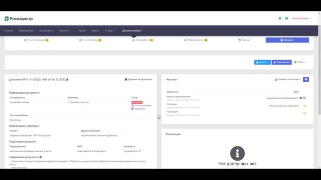 100. Служебные записки: Исправление замечаний (удаление файла), повторная отправка на согласование