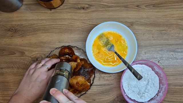 Грибные отбивные из опят Ингредиенты: Крупные опята – 300 г Растительное масло – для жарки Соль – по вкусу Перец – по вкусу Мука – 3 ст. л. Яйцо – 1 шт. Приготовление: Подготовка грибов: Крупные опята тщательно промыть Отбивание: Выложить грибы на разделочную доску и аккуратно отбить плоской стороной ножа или специальным молоточком, чтобы они стали плоскими. Приготовление кляра: В одной тарелке взбить яйцо с щепоткой соли и перца. В другую насыпать муку. Панировка: Обвалять каждый гриб сначала в муке, затем окунуть в яйцо и снова обвалять в муке.(по желанию) Жарка: Разогреть растительное масло на сковороде и обжарить отбивные с обеих сторон до золотистой корочки (примерно 3–4 минуты с каждой стороны). Подача: Готовые отбивные выложить на бумажное полотенце, чтобы убрать лишнее масло. Подавать горячими с соусом или гарниром. Приятного аппетита! 🍄🔥