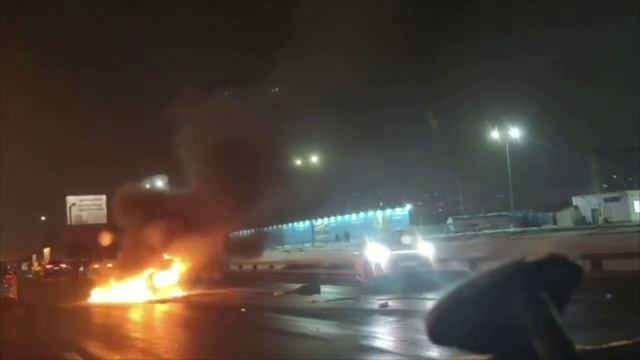 Москва.На МКАД машину разорвало пополам Причина ДТП — столкнулись две легковушки. Одна из машин загорелась.