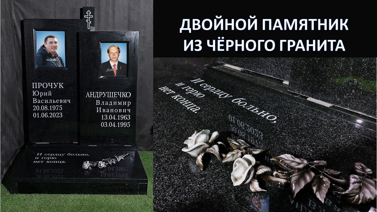 ДВОЙНОЙ ПАМЯТНИК ИЗ ЧЁРНОГО ГРАНИТА. ГАРАНТИЯ 30 ЛЕТ. СКИДКА 10% И 20% УСЛОВИЯ В ОПИСАНИИ ПОД ВИДЕО