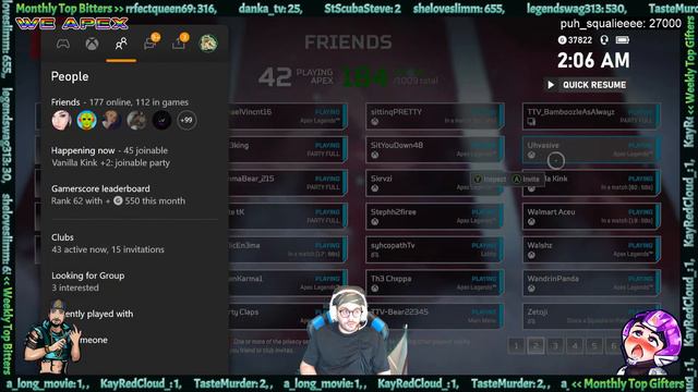 Powered by Restream https://restream.io/ Dope Apex and Stream Gear for CHEAP on AMAZON amazon.com/shop/xplazz My Career (APEX LEGENDS) THE MOST AGRESSIVE APEX PLAYER Hit #1 as OCTANE on ALL PLATFORMS for Full Squad Wins, Season 2 wins, Finishers, Shotgun Kills, LMG Kills, Care Package Weapon Kills, Revives, Stim Distance, Allies Launched from Jump Pad, Passive Health Regenerated, and Times Top 3! I Hold THE MOST #1 Spots on OCTANE! ALSO was top 7 for highest level in the world! Best Weapons and Legend Skins & Charms! (HYPER SCAPE) %33 W/L Squads (would be %50 but i accidentally solo qued a few times) %10 W/L Solos 5.0 K/D %100 Crown Wins %0.1 World (COD WARZONE) Played less than 10x w 10 wins in quads and trios and 5-10 more in LTMs 5.0 K/D Solos (COD BO4) 450 wins before APEX came out, quit cold turkey due to server issues and glitches, was top 100 w 100 days playtime (FORTNITE) OG SKINS SINCE SEASON 2 but just started playing this season plz help me! 12 Wins 2 in SOLO My Son is CRACKED THO lol (NARUTO SHINOBI STRIKERS) OG SEASON 1 S-RANK NINJA Top 40 World SEASON 2 S-RANK but they stopped taking points away when you lose and matchmaking was trash so i lost interest. (MORTAL KOMBAT 9) #3 XBOX Tag Battles (YU-GI-OH! 5Ds) %90 W/L Solo %95 W/L Tag Top 10 Duelists on Xbox 3k+ wins but opponents would disconnect to avoid taking loss so i quit (STARCRAFT II) RANKED DIAMOND (CALL OF DUTY MW1-3 BO1-3 AW & IW) OG SEARCH & DESTROY GOD but leaderboards were hacked so idk guessing top 100 easy maybe top 20 but who knows 100 days playtime MW2 (HALO 2-3) RANK 50 almost every playlist + 5 STAR GENERAL in SOCIAL SLAYER LOL I used to play for the win, but now I play for the style points, stream content, and clips now! OVER 7000 HRS STREAM EXPERIENCE! New to FB&YT any tips are appreciated please! Dealing with a lot of drama irl so plz b chill I play w viewers when they become friends and i play w friends when my anxiety feels up to it so plz dont ask and make me anxious