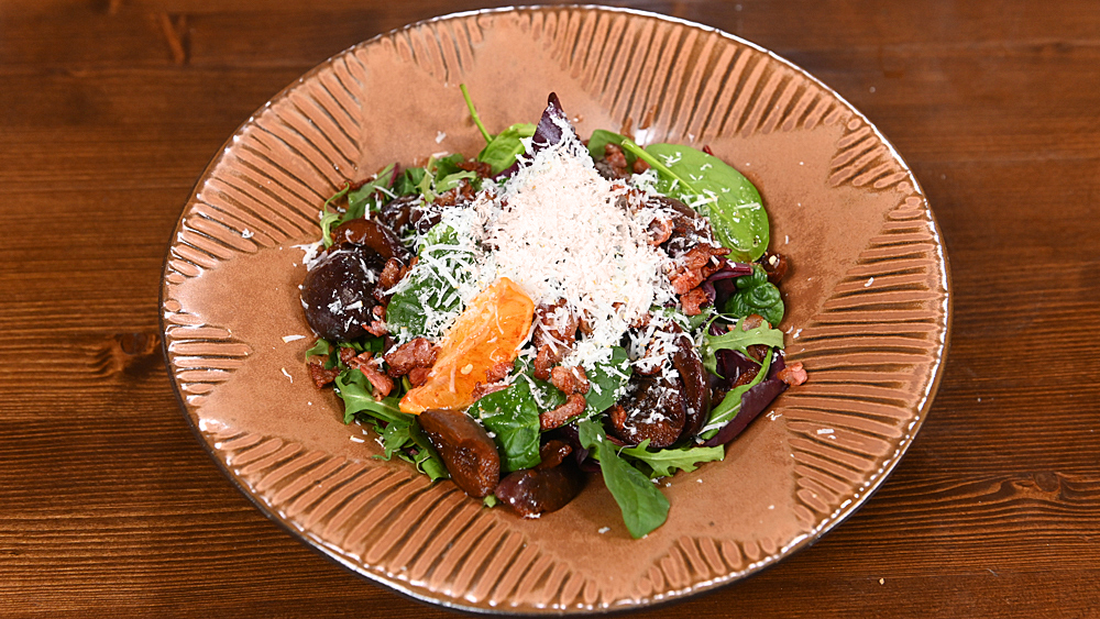 Говяжьи щечки. Салат с маринованной сливой