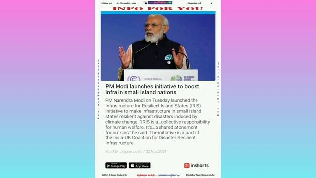 Prime Minister's one word movement...Js e News of Nov 4th 2021..first Page