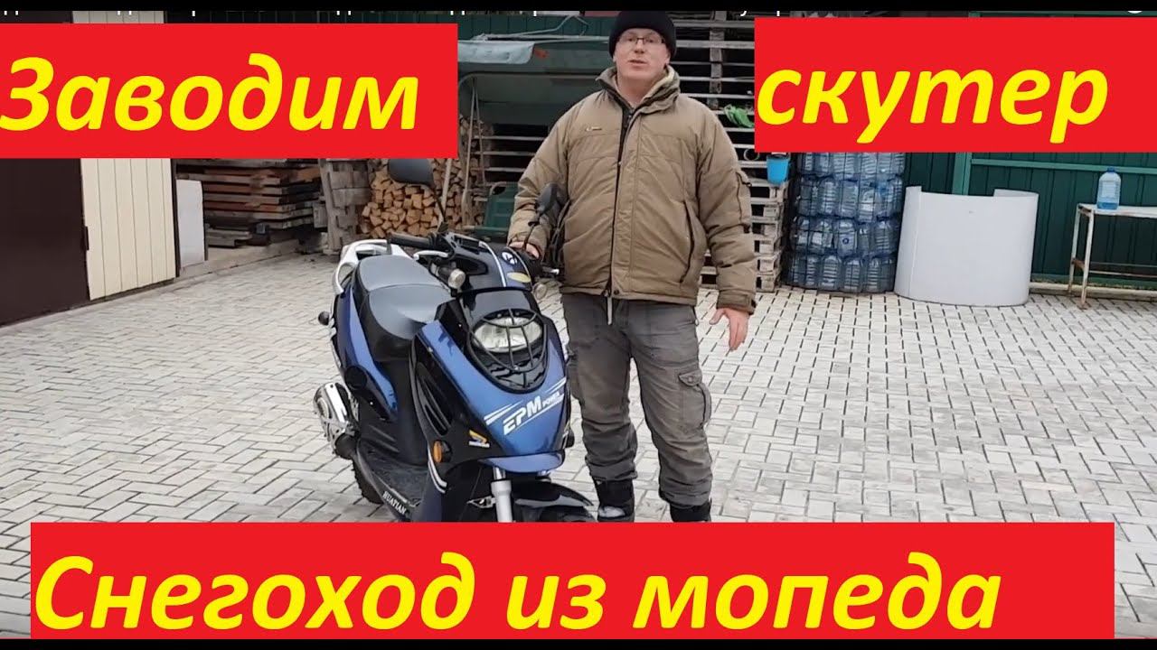 Заводим мопед в мороз. Снегоход из мопеда. Старый китайский скутер.