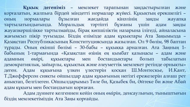 Қазақ тілі. 8-сынып. "Жасөспірім және заң"