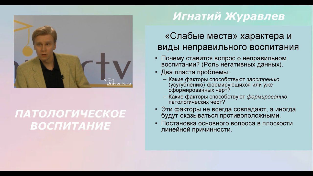 О патологическом воспитании. Лекция Игнатия Журавлева