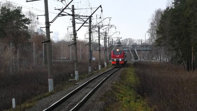 Электровоз ЭП2К-014 со скорым поездом №122Е Екатеринбург - Оренбург следует по перегону Путевка - Лечебный. Сверд.Ж.Д., Свердловская область, Россия. Приписка: ТЧЭ-3 Барабинск. 17.10.2020