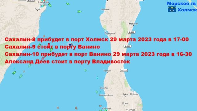 Позиция пассажирских судов для линии Ванино - Холмск 28 марта 2023 года