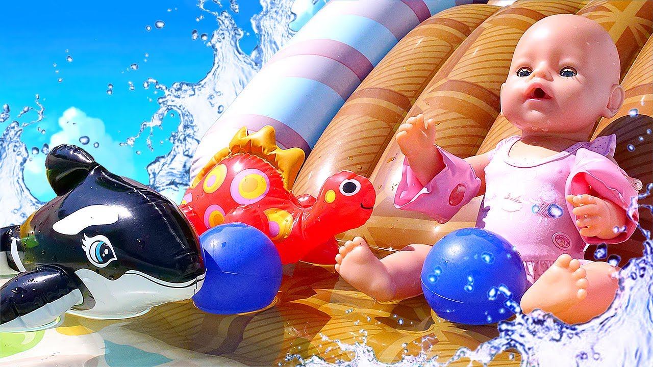 Купаем Беби Бон в бассейне - Играем в куклы Baby Born - Видео для девочек игры дочки матери