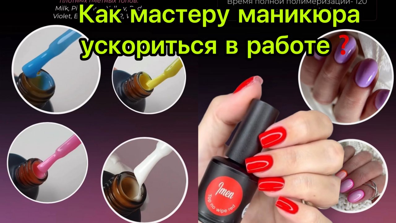 ВСЕМ ОТЛИЧНЫХ ВЫХОДНЫХ! Только просто представь, что ты можешь сэкономить 15-20 минут на маникюре? Давайте я вам расскажу как сэкономить время, но не за счёт техники... Цель выпуска цветных топов-ускорить процесс работы мастеру. В процессе маникюра с цветным топом вы просто пропускаете этап покрытия цветным гель-лаком. В нашей линейке 9 шт. плотных цветных топов: Milk, Pink, Blue, Yellow, Red, Violet, Beige 1, Beige 2, White Подготовили ногтевую пластину. Нанесли базу, создали архитектуру. Сверху цветной топ. Закончили маникюр Все топы без липкого слоя Устойчивые к мелким царапинам. Не теряют цвет в течение 3х недель. Время полной полимеризации - 120 сек. в лампе Led/UV 48W Если вы уже пробовали наши цветные топы, поделитесь впечатлениями. ГДЕ КУПИТЬ? магазин-склад в Москве ул.Кутузовский просп.67 корп.1 8-926-215-43-52 каждый день с 10 до 19.00 WILDBERRIES milk top ( арт.19927054) https://www.wildberries.ru/catalog/19927054/detail.aspx?targetUrl=MS&size=52495789 blue top ( арт. 41329507) https://www.wildberries.ru/catalog/41329507/detail.aspx?targetUrl=MS&size=83136422 pink top ( арт.41329508) https://www.wildberries.ru/catalog/41329508/detail.aspx?targetUrl=MS&size=83136423 voilette top ( арт. 41329509) https://www.wildberries.ru/catalog/41329509/detail.aspx?targetUrl=MS&size=83136424 yellow top ( арт. 41329510) https://www.wildberries.ru/catalog/41329510/detail.aspx?targetUrl=MS&size=83136425 red top ( арт. 46466614) https://www.wildberries.ru/catalog/46466614/detail.aspx?targetUrl=MS&size=90673923 Онлайн магазин www.imennails.ru