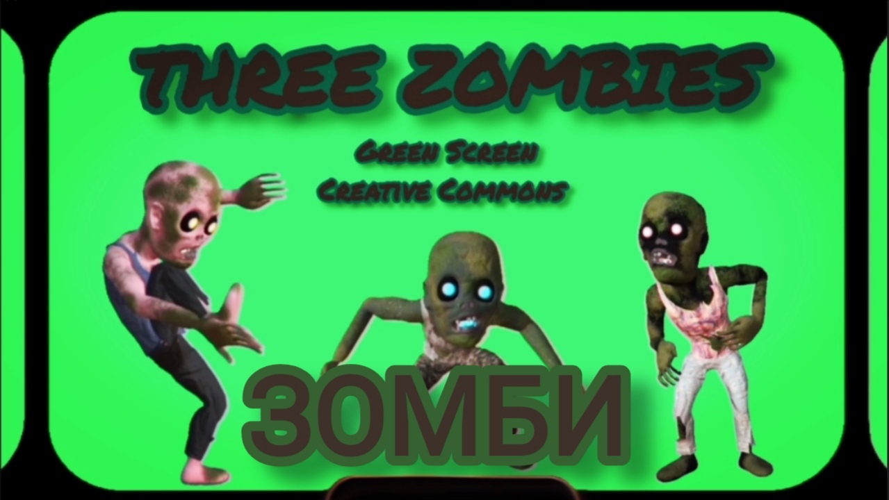 Три зомби Green Screen футаж. Хромакей анимация зомби на зелёном фоне.