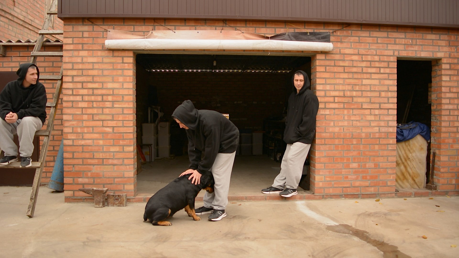 Играю с ротвейлером и дворняжкой