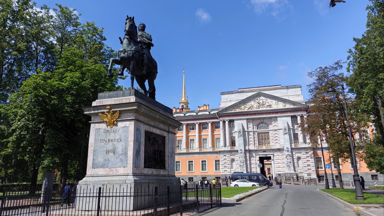 Прогулку в этот не очень уютный и подходящий для неспешных променадов по городу день я решила завершить, укрывшись от шквального ветра в каком-нибудь историческом помещении. Поскольку я шла в сторону Михайловского замка, выбора не было. Тем более, я давно хотела зайти посмотреть отреставрированные и открытые в 2021 году Парадные покои Павла I. В XVIII веке на месте Михайловского замка стоял деревянный Летний дворец императрицы Елизаветы Петровны. По инициативе Павла I его снесли и начали строить здесь Михайловский замок (назван в честь архангела Михаила — покровителя династии Романовых), который должен был стать парадной резиденцией. Строительство замка началось в 1797 году, и было закончено в рекордные для того времени сроки — всего за три года. Работами руководили архитекторы Василий Баженов и Винченцо Бренна. Павел I был человеком, одержимым идеей создания безопасного убежища для себя и своей семьи. Он долгое время страдал от недоверия к своему окружению, что стало одной из причин обзавестись укрепленным дворцом. Михайловский замок не только внешне выглядел как средневековая крепость, но и был опоясан рвом с подвесными мостами, сторожевыми башнями и стенами, а его внутреннее устройство включало сложную систему коридоров и лестниц, рассчитанных на быструю эвакуацию в случае опасности. Император Павел I въехал в замок, когда еще продолжалась отделка внутренних интерьеров, но прожил в резиденции всего 40 дней — с 1 февраля по 11 марта 1801 года. Несмотря на все предпринятые меры для собственной безопасности, в ночь с 11 на 12 марта 1801 году он был убит здесь заговорщиками в результате дворцового переворота. Царская семья после убийства императора сразу же покинула дворец. Михайловский замок на два десятилетия пришёл в запустение. В помещении императорской спальни, где был убит Павел I, в 1858 году по указанию императора Александра II была освящена церковь св. первоверховных апостолов Петра и Павла. В 1819 году дворец передали в ведение Главного инженерного училища, учебного заведения, выпускавшего военных инженеров. Отсюда и второе название — Инженерный замок. Здесь в 1838–1843 годах учился и до 1841 года жил Фёдор Михайлович Достоевский. Также Инженерное училище в Михайловском замке закончили, например, герой Севастополя Эдуард Иванович Тотлебен, физиолог Иван Михайлович Сеченов, физик Павел Николаевич Яблочков, композитор и учёный Цезарь Антонович Кюи, писатель Дмитрий Васильевич Григорович. После революции, начиная с 1918 года в здании Михайловского замка находились Первые инженерные командные курсы. Лишь в 1990-е годы бывшая императорская резиденция была превращена в музей и с тех пор стала доступна для широкой публики. Из Парадных залов императора Павла I доступны к ознакомлению: Галерея Лаокоона, Столовый и Предстоловый залы, Георгиевский зал, Овальный зал и Большой Тронный залы). Недавно вышли из реставрации Столовый и Предстоловый залы, где на стенах были воссозданы лионские шелковые штофные обои. В покоях камер-фрейлины А. С. Протасовой можно ознакомиться с великолепной экспозицией "Романовской галереи" (идея собрания портретов представителей императорской семьи принадлежала императору Николаю I), где представлены работы Л. Каравака, Ф. С. Рокотова, Ж. Л. Вуаля, Д. Г. Левицкого и других мастеров. С моей точки зрения, эта галерея портрето