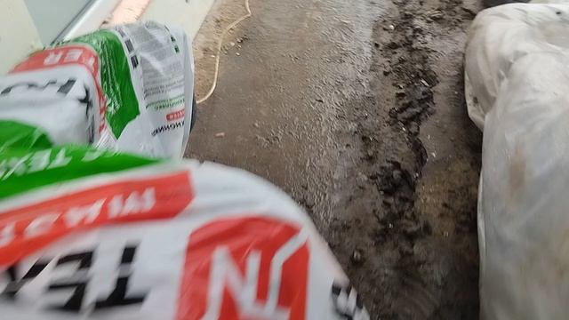 Начало штукатурки фасада.