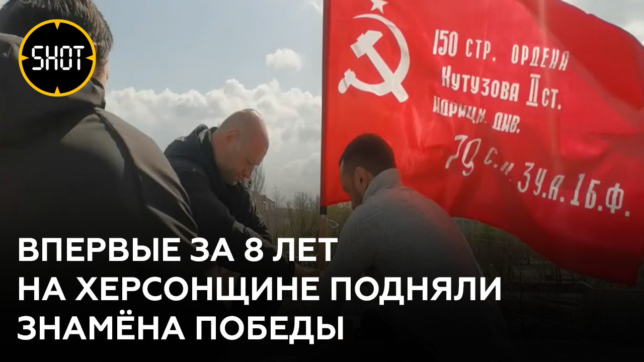 В преддверии 9 Мая в Новой Каховке Херсонской области по всему городу поднимают Знамёна Победы — копии того самого алого флага, который был водружён над Рейхстагом в мае 1945-го. Это произошло впервые за восемь лет — с 2014 года на Украине за демонстрацию советской символики грозило уголовное наказание. Но с освобождением города российскими военными у местных жителей появилась возможность встретить День Победы, не опасаясь гонений. Флаги водружают члены общественной организации "Дорога жизни" — это движение создано представителями антифашистских, ветеранских и казачьих организаций города.