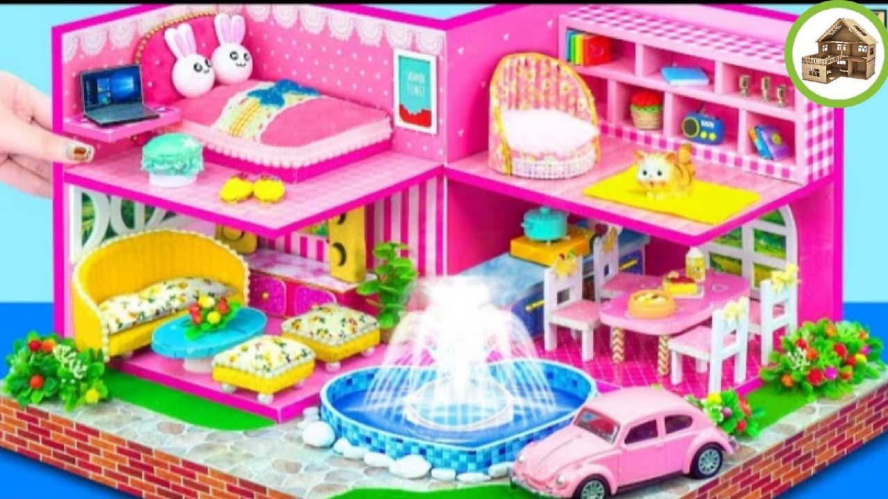 Для кукол бассейн с фонтаном для двух садовых вилл с 4 комнатами из картона своими руками