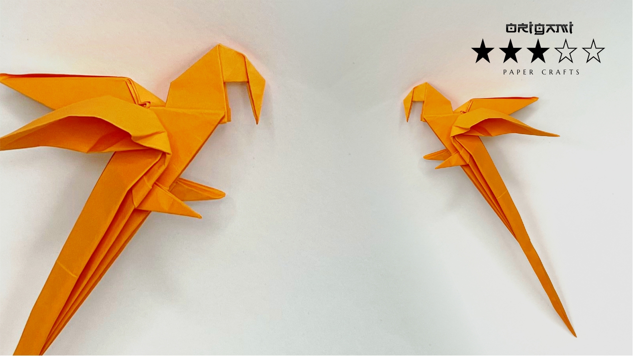Оригами Бумажный попугай из листа бумаги. Подробный видео урок для детей