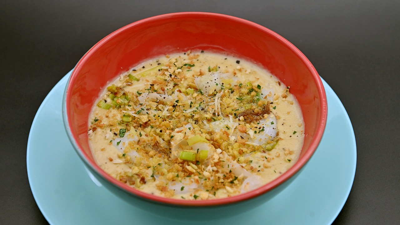 Суп из лука-порея, картофеля и белой рыбы