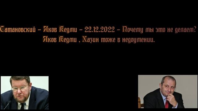Сатановский - Почему мы это не делаем? Яков Кедми , Хазин тоже в недоумении.