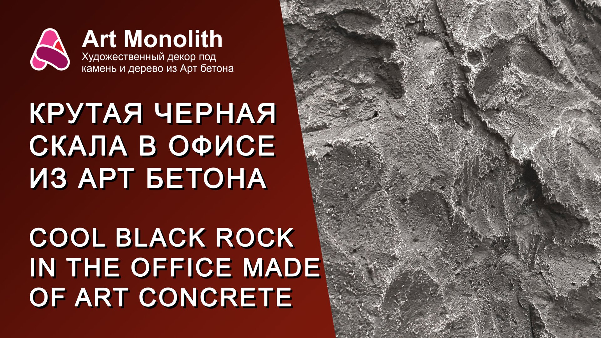 В этом видео показываю как я делал крутейшую черную скалу в переговорной Московской компании из декоративной штукатурки Арт Бетон. Приятного просмотра! Все этапы, от начала и до конца: подготовка, нанесение Арт Бетона, резка, покраска. Заказать отделку Арт Бетоном можно по тел/WhatsApp: +7-917-299-63-36 Надеюсь вам понравится это видео. Ставьте лайки, пишите комментарии, задавайте вопросы (если возникнут), подписывайтесь на мой канал, а если еще сделаете репост, будет вообще шикардос! ? Видео "Рецепт Арт Бетона": https://home.strannik-j.org/video/4bd300f7dfde9cef0a78612e07f04325/ Видео "Обзор инструмента для Арт Бетона": https://home.strannik-j.org/video/a572e5a7201c3a0e077712a1046645ae/ Мои соцсети: ВКонтакте: https://vk.com/art.monolith ВК видео: https://vkvideo.ru/@Msozdatel Instagram: https://www.instagram.com/art.monolith/ RuTube: https://home.strannik-j.org/channel/31422036/ Дзен (видео): https://dzen.ru/profile/editor/artmonolith ===================== In this video I show how I made the coolest black rock in the meeting room of the Moscow company from Art Concrete decorative plaster. Enjoy watching! All stages, from start to finish: preparation, application of Art Concrete, cutting, painting. I hope you enjoy this video. Like, write comments, ask questions (if you have any), subscribe to my channel, and if you repost, it will be absolutely amazing! ? Video "Recipe for Art Concrete": https://home.strannik-j.org/video/4bd300f7dfde9cef0a78612e07f04325/ Video "Overview of tools for Art Concrete": https://home.strannik-j.org/video/a572e5a7201c3a0e077712a1046645ae/ My social networks: ВКонтакте: https://vk.com/art.monolith ВК видео: https://vkvideo.ru/@Msozdatel Instagram: https://www.instagram.com/art.monolith/ Дзен (видео): https://dzen.ru/profile/editor/artmonolith