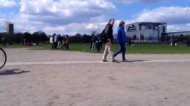 Гоняет голубей перед Рейхстагом.