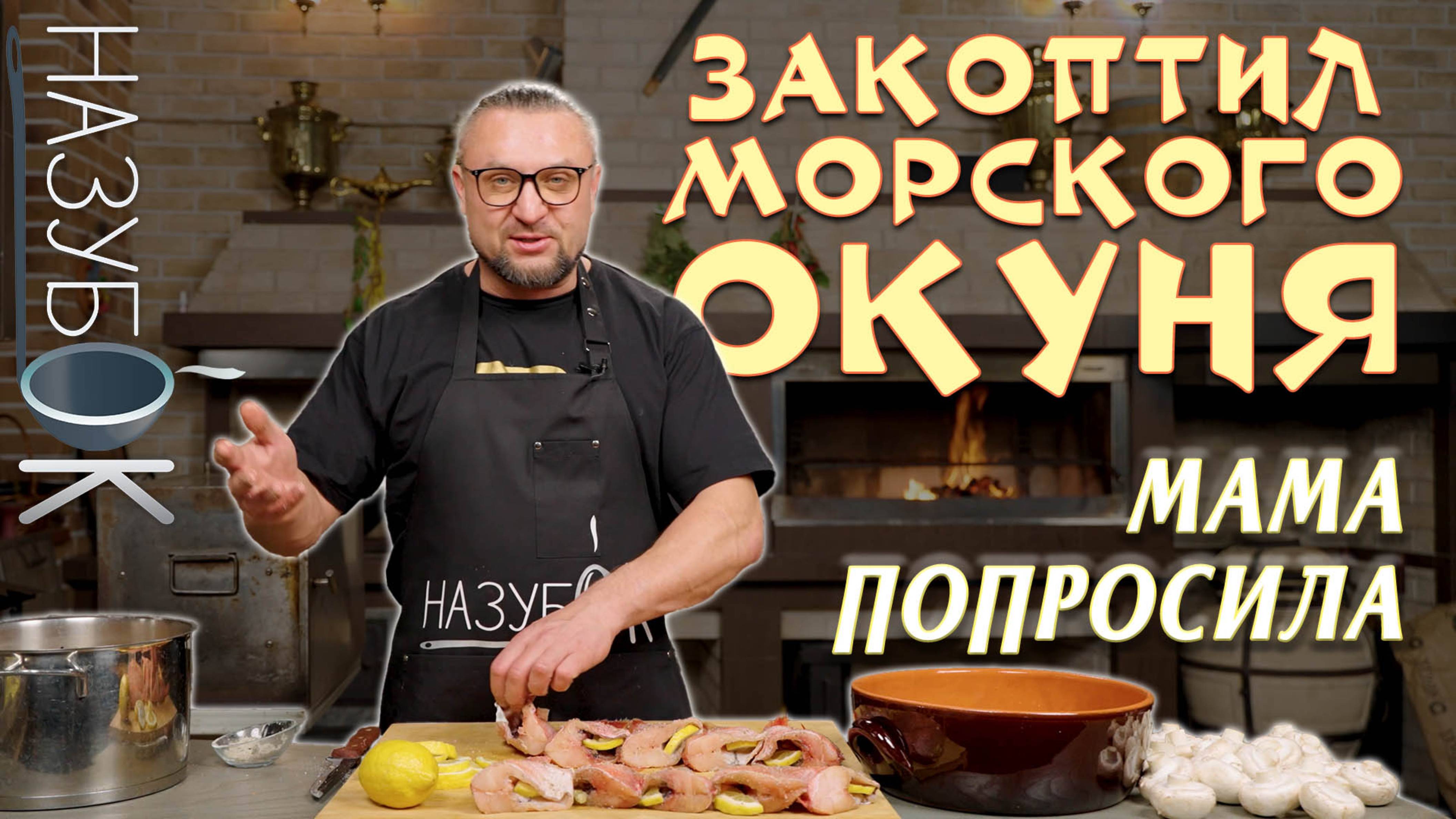 Копченый морской окунь очень любит моя мама! А гарниром будут шампиньоны на углях!