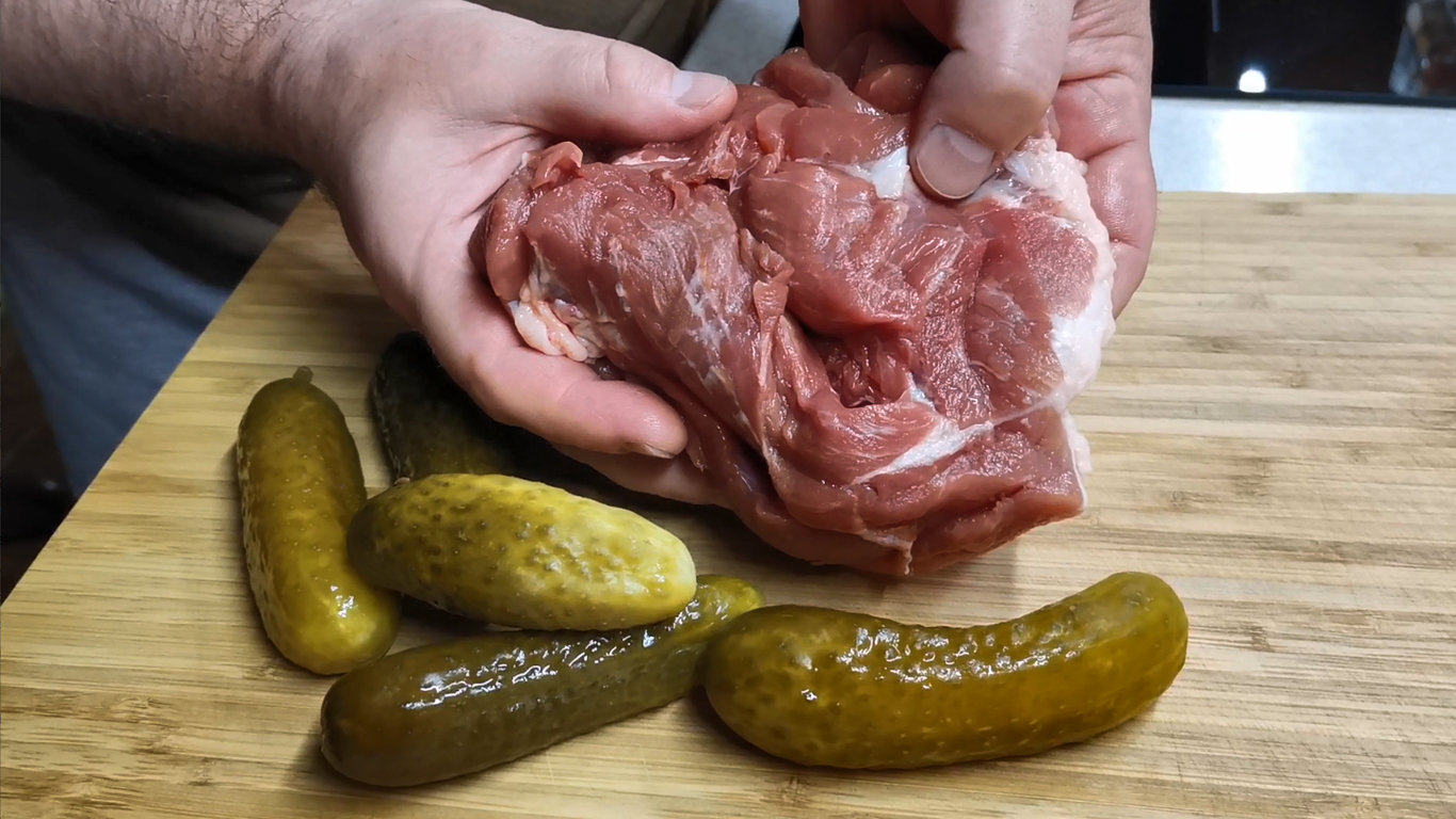 Замешиваем МЯСО с СОЛЕНЫМИ ОГУРЦАМИ. Рецепт мясного блюда под любой гарнир, без грамма масла.mp4