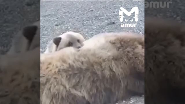 18+ 😢Медвежонок плачет у тела мёртвой матери — её сбили на Камчатке.