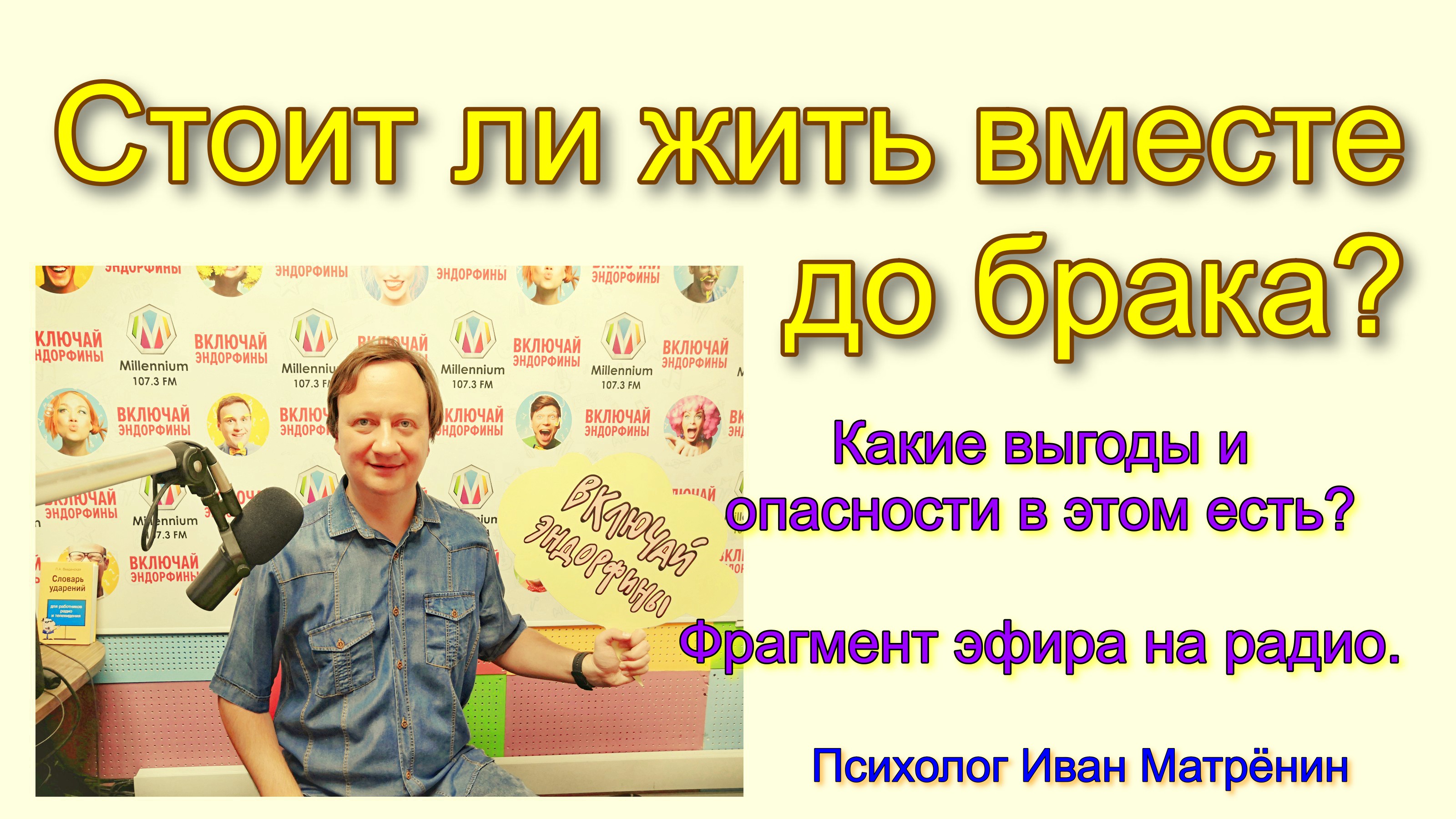В этом видео фрагмент эфира на радио. На передаче тема которой была современная семья задали вопрос о том, нормально ли жить вместе до брака, хорошо ли это. Сейчас в нашей стране для кого-то жизнь мужчины и женщины вместе до брака норма, для кого-то это немыслимое! Зависит от ожиданий партнёров, от того. Как какой культуре они принадлежат, от воспитания. Здесь мы без лишних эмоций разбираем это явление, его плюсы и минусы. Подробнее, в этом видео. Приятного просмотра! Мой канал в яндекс.дзен - https://zen.yandex.ru/profile/editor/ivanmatrenin. Здесь много текстов и видео на эту и другие темы по психологии и отношениям. Ссылка на это видео в яндекс дзен – https://zen.yandex.ru/video/watch/619e3b416fc692673a889616 * Мой канал в YouTube - http://www.youtube.com/c/ПсихологИванМатрёнин. Ссылка на это видео в YouTube – https://youtu.be/OYwfqk6-n4k.