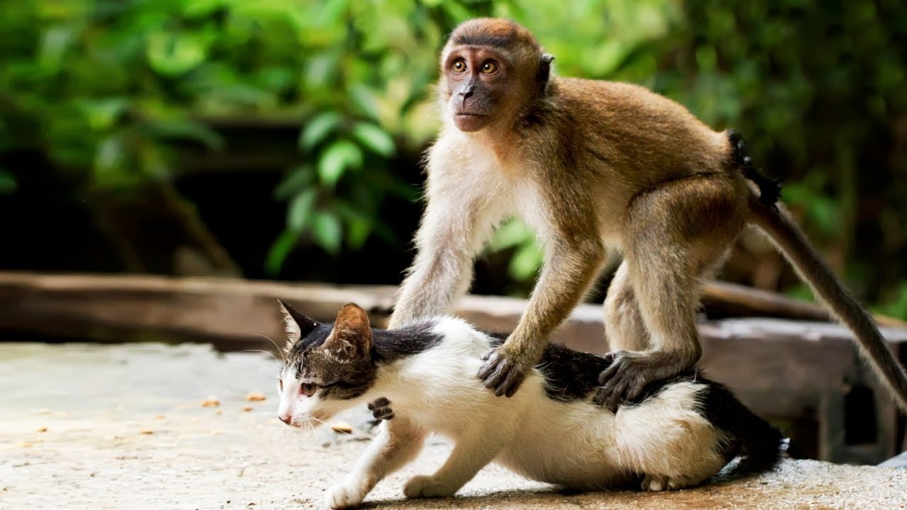 Смешные обезьяны и кошки угарные видео.Подборка приколов с обезьянами.