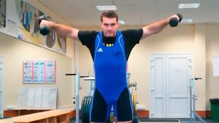 Мой сайт: Твой Тренер - http://tvoytrener.com Магазин спортивного питания: https://tvoypit.com Заказать индивидуальный комплекс упражнений: http://tvoytrener.com/sotrydnichestvo/kompleks_upragnenii.php Вес и количество повторений для новичков Для мужчин: 10 - 15 повторений по 4 - 8 кг (каждая гантеля). 2 - 3 подхода. Для женщин: 10 - 15 повторений по 2 - 4 кг (каждая гантеля). 2 - 3 подхода. Нагрузка по группам мышц Нагрузка указана по 10-ти бальной шкале (общая нагрузка суммируется) Средняя дельта 10 (высокая) Верх спины 3 (слабая) Общая нагрузка / тип упражнения 13 (слабая) / изолированное Описание упражнения Классическое упражнение для накачки средних дельт. Большие веса здесь делать не нужно. Локти немного согнуты и 'смотрят' назад и немного вверх. В верхней точке можно делать паузу. После того, как вы уже освоили технику, можно взять веса побольше и делать более 'грязно' (читингуя). Это поможет сделать ваши плечи ещё шире. Основные фишки 1. Гантели лучше опускать не по бокам туловища, а выводить перед собой. Так вы сможете сильнее растянуть плечи. 2. Большие веса можно делать с читингом. То есть помогать себе ногами и спиной. Но это оправдано только с теми весами, которые чисто вы уже сделать не можете. Благодаря читингу вы сможете взять гантели потяжелее и сделать ваши плечи сильнее. 3. Руки необходимо немного сгибать в локтях. Однако не делайте это слишком сильно. Это снизит амплитуду движения и КПД упражнения. 4. Следите за тем, чтобы делать махи чётко в стороны. То есть не выносите руки вперёд. Так делать легче, но это переносит нагрузку со средних дельт на передние. 5. Не опускайте локти. Они должны смотреть назад, а не вниз. В верхней точке локти должны быть на одном уровне с кистями. 6. Поднимать гантели нужно до уровня плеч, или чуть выше. Но не сильно выше. Иначе в работу будут включаться трапеции. 7. Не горбитесь. Во время всего движения спина должна быть прямая, а плечи расправлены.