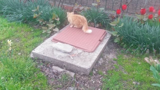 Рыжая кошечка играет