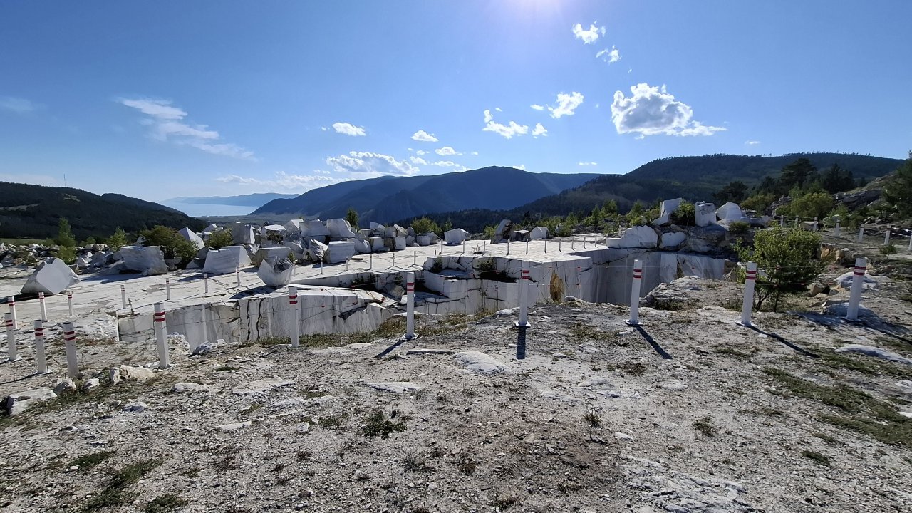Мраморный карьер в Бугульдейке был открыт в 1968–1973 годах. Месторождение было разведано предприятием «Иркутскгеология». Поначалу разработка шла активными темпами. Но после того, как любые работы, носящие промышленный характер, у берегов Байкала стали запрещаться, карьер перешёл в резервный список. В настоящее время добыча горной породы приостановлена из-за природоохранного статуса местности. Карьер превратился в туристическое место. Однако иногда выдаются лицензии на ограниченные объёмы добычи, при этом длина мраморных блоков не может превышать 7 метров. Мрамором из Бугульдейского карьера была отделана станция «Баррикадная» Московского метрополитена и стены железнодорожного вокзала в городе Слюдянка. #мрамор #мраморныйкарьер #обзор #малоеморе #байкал #горы #лето2025 #бугульдейка #отдых #местосилы #фото