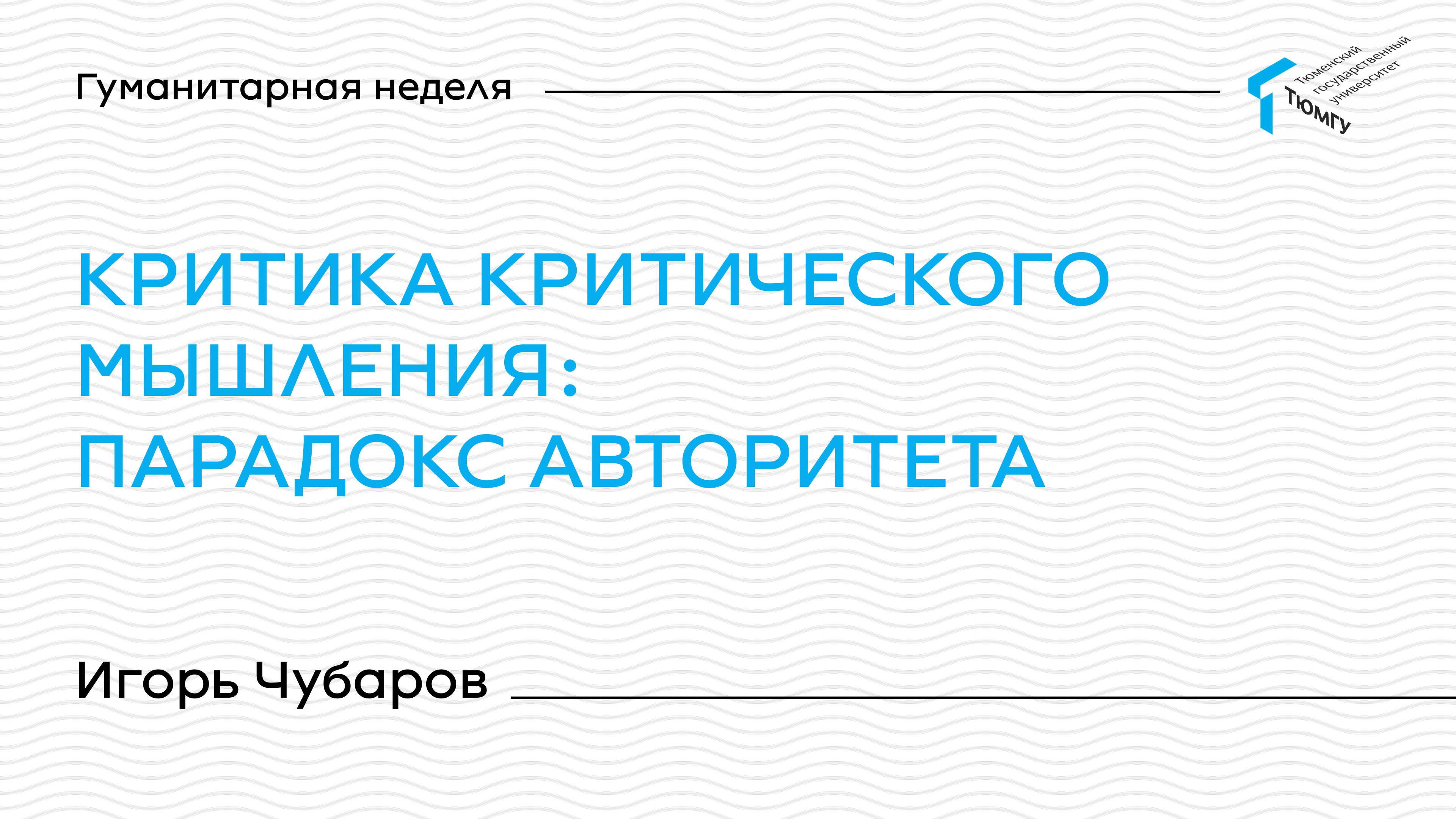 Лекция Игоря Чубарова — директора Школы перспективных исследований SAS, проректорa ТюмГУ Тема лекции: Критика критического мышления: парадокс авторитета Сайт для поступающих в ТюмГУ: abiturient.utmn.ru Группа ВКонтакте: vk.com/tyumen.university Telegram-канал: t.me/utmn_life