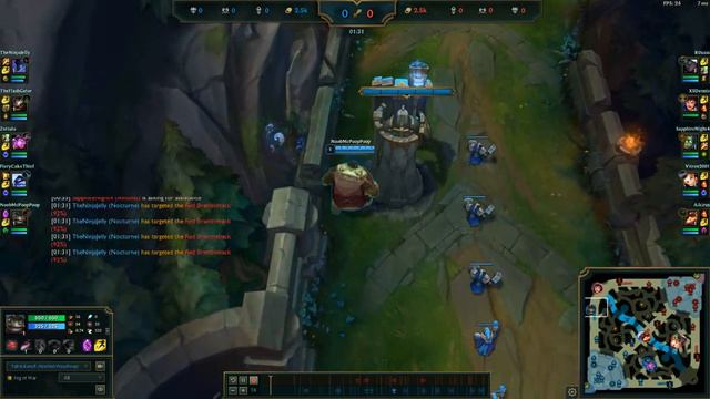 Tahm Kench shuffles down lane, and misses the first minion wave. League of Legends gameplay.
