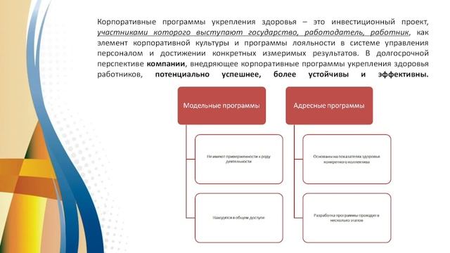 Разработка корпоративных программ укрепления здоровья работников, основанная на сведениях о состоянии их здоровья, представляется более эффективной, чем проведение общеоздоровительных мероприятий. Полученные данные позволяют предполагать, что внедрение корпоративных программ укрепления здоровья работников положительно влияет на здоровье сотрудников, уменьшает их заболеваемость.