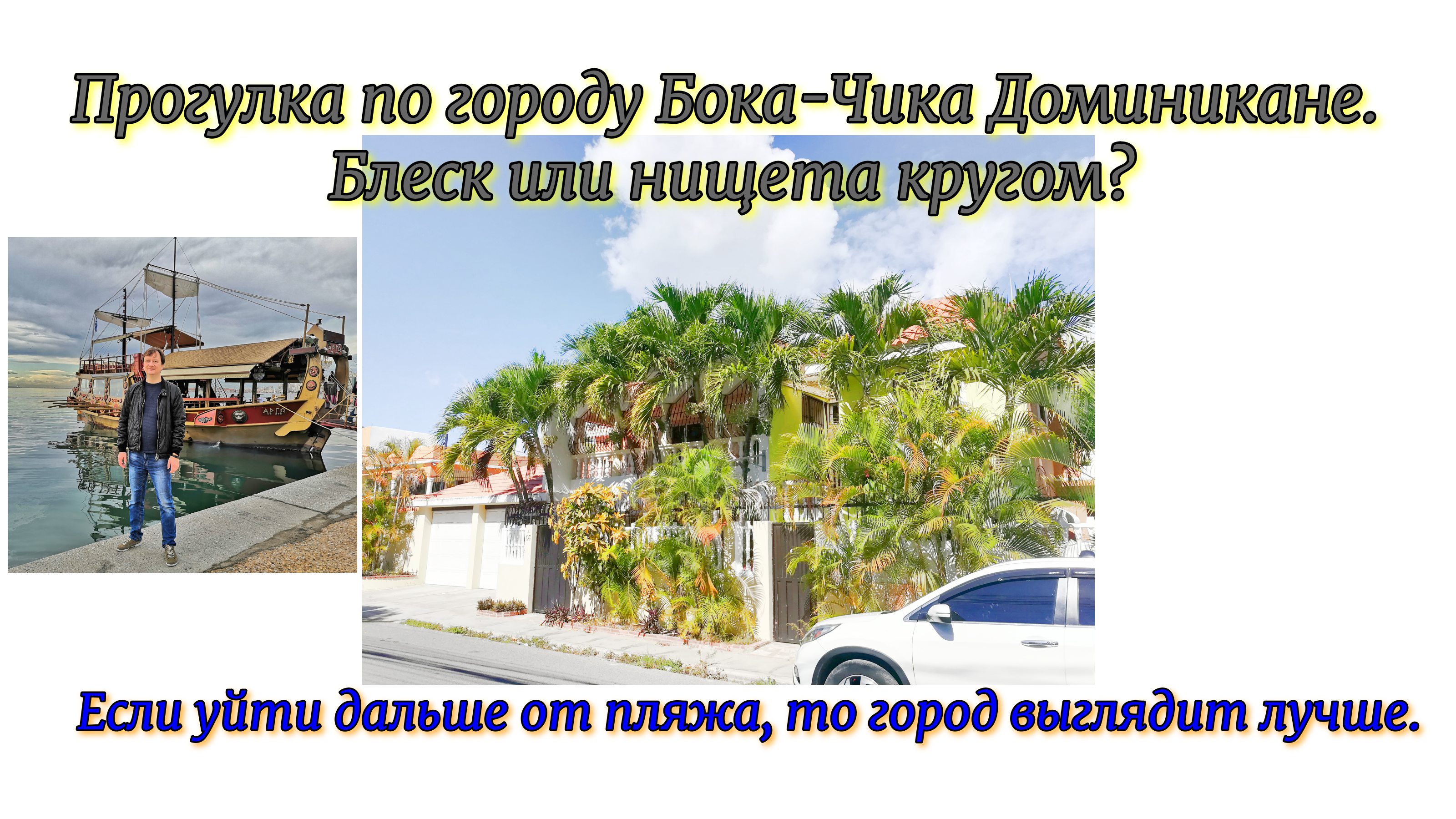 В предыдущих видео затрагивал тему того, что в курортном городе Бока-Чика пляжи дальше от отелей выглядят, мягко говоря, не очень. Вообще за стенами отелей «не очень». А что, если пойти вглубь города? Странно, но если гуляя по Бока-Чика уйти дальше от пляжа, то населённый пункт выглядит даже приличнее. Но это конечно про центр города речь идёт, а не про окраины. В центре города есть нормальные магазины и торговые центры, есть ощущение присутствия цивилизации. Окраины Бока-Чика сам не смотрел, но говорят, что они страшные! * Подробнее об этом смотрите в видео. Приятного просмотра! Это видео и другие публикации на моём канале в яндекс.дзен, «Про путешествия. Иван Матрёнин». Адрес в Дзене - https://zen.yandex.ru/travelblogger. Подписывайтесь на мой канал! Ссылка на это видео – https://zen.yandex.ru/video/watch/61c3719fd3317645f4e4c024 * На моём канале в YouTube - ищите Travel blogger Ivan Matrenin. Ссылка на это видео - https://youtu.be/Nw2ccbFpQL0