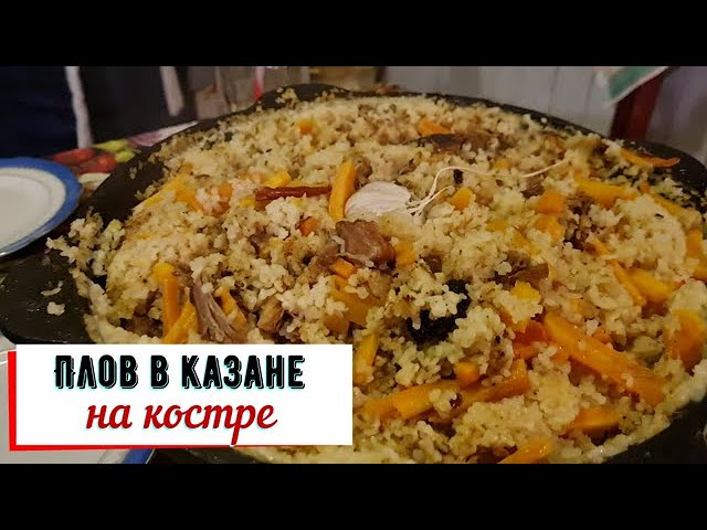 Плов в казане на костре.
