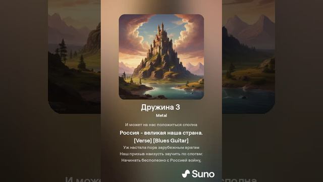 Патриотическая песня - гимн военно-патриотического клуба "Дружина" Минусинского колледжа культуры и искусства: стихи - Александр Давыдов asd3major, музыка Suno. Там, где голову вдруг приподнимет вражина, Встанет мощной стеной боевая Дружина. Хоть звучат голоса, что ещё молодёжь, В бой готовы и нас на испуг не возьмёшь. Мы способны забраться и в горы, и в лес, И нести за плечами внушительный вес, Можем в небо подняться в составе звена, Чтоб была в безопасности наша страна. Будем вместе для фронта масксети плести И учиться стрелять, по-пластунски ползти, И достойно профессией овладевать, И всегда защищать нашу Родину-мать. Мы болеем за тех, кто на передовой, Ради нас кто рискует своей головой, И поддержим, чем можем, с врагами войну, Ведь стоит наше будущее на кону! Уж настала пора зарубежным врагам Наш призыв наизусть заучить по слогам: "Начинать бесполезно с Россией войну, Защитят россияне родную страну". Мы сильны в обороне, учёбе, труде, И друзьям помогаем всегда и везде, Может смело на нас положиться сполна Россия - любимая наша страна!