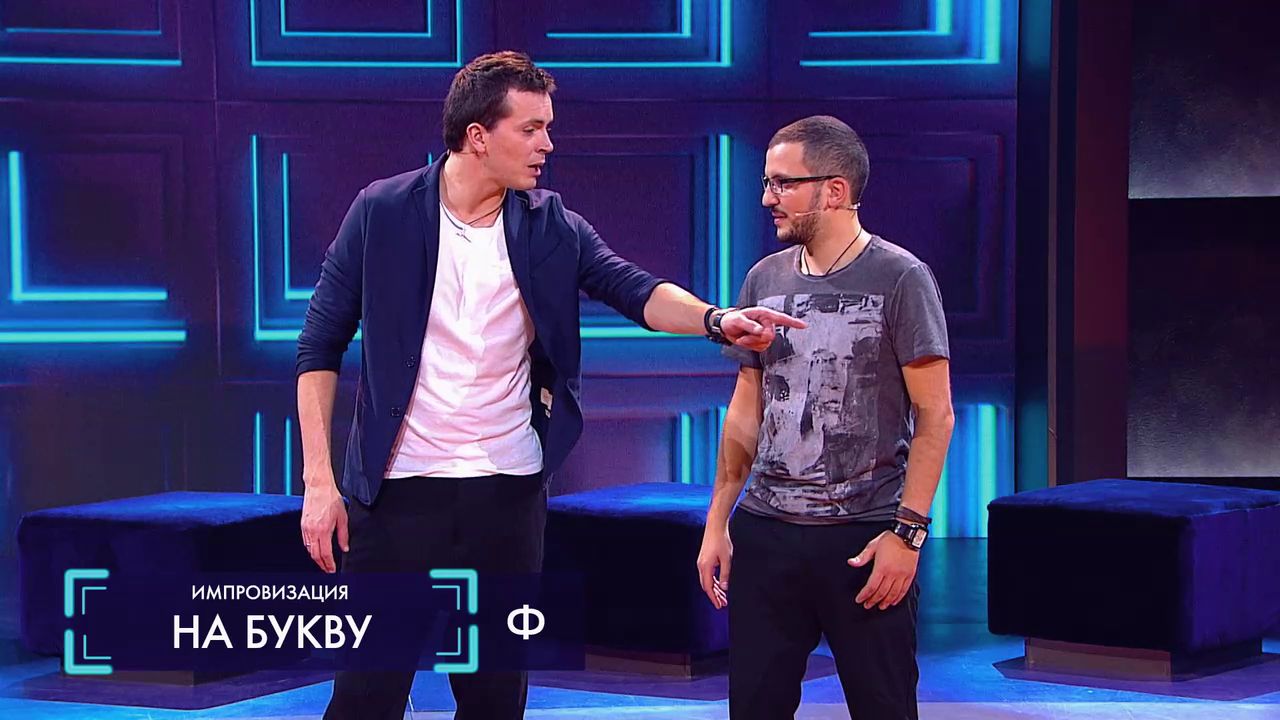 Арсений играет роль девушки, которая собирается бросить своего парня. Остальные участники поочерёдно предстают в образе этого парня, но их задача усложняется тем, что они могут говорить все слова только на одну букву.