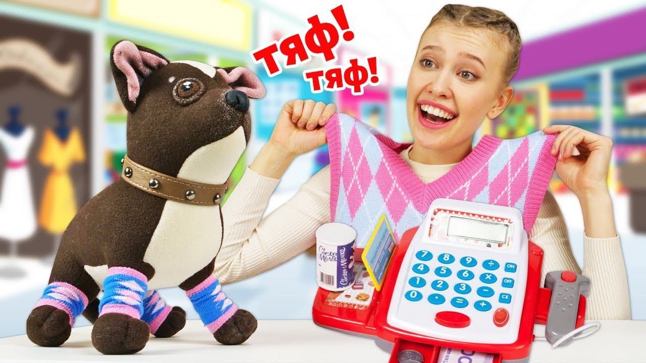 Ролевая игра магазин - Как мама. Игрушка собачка Шоколадка покупает гетры!