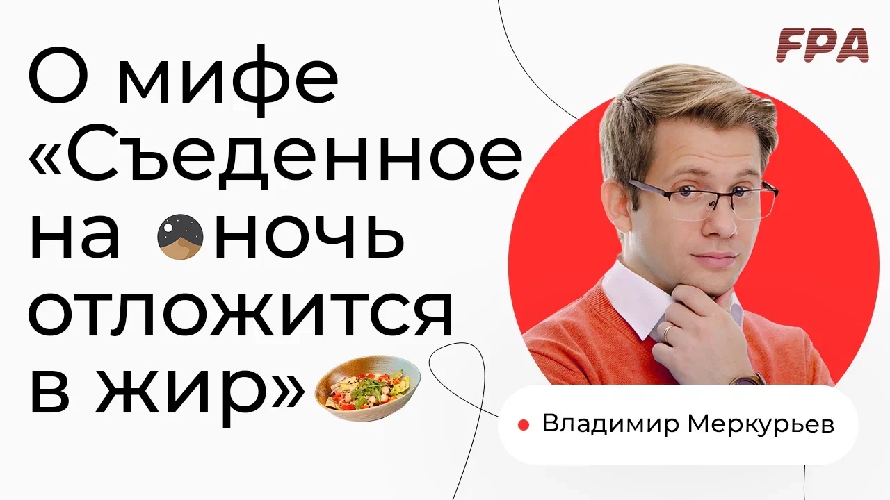 «Еда перед сном отложится в виде жира! Нельзя есть после 18 часов!» Откуда взялся этот миф? Разбираем страшилку, которую до сих пор некоторые боятся, в отрывке вебинара эксперта-преподавателя FPA, физиолога, кандидата биологических наук Владимира Меркурьева. Владимир Меркурьев https://t.me/fiziologmerkuryev — эксперт-преподаватель FPA, физиолог, кандидат биологических наук. Вебинар «Мифы и легенды физиологии и нутрициологии» смотрите полностью здесь ? https://youtu.be/lutrmjTR7i0 и делитесь впечатлениями в комментариях! __________ Ассоциация Профессионалов Фитнеса (FPA) - лидер на российском рынке фитнес-образования. С 2000 года в FPA сертифицировано более 22 000 специалистов. Наши выпускники работают более чем в 1000 клубах Москвы, России и стран зарубежья ? http://fitness-pro.ru/ __________ Дистанционные программы обучения: – Персональный фитнес-тренер: https://bit.ly/39A06Xr – Фитнес-нутрициолог: https://bit.ly/37oC14n — Инструктор групповых программ: https://bit.ly/3AUq3ip – Детский фитнес: https://bit.ly/34OjT4B __________ Очные программы обучения: – Персональный фитнес-тренер: https://bit.ly/2ONTH2K – Инструктор групповых программ: https://bit.ly/2uFh3Re __________ Мы в соцсетях: ВКонтакте: https://vk.com/fpafpa Telegram-канал: https://t.me/trenerskayaFPA Telegram-чат для тренеров: https://t.me/trenerskayaFPAchat Яндекс.Дзен: https://zen.yandex.ru/fitness_pro_ru