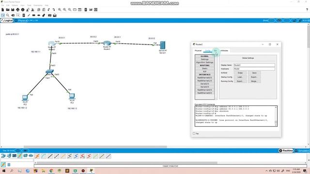 Command: For Router 2: exit ip route 0.0.0.0 0.0.0.0 fa1/0 For Route3: exit ip route 0.0.0.0 0.0.0.0 fa0/0 For router 2: access-list 1 permit 192.168.1.0 0.0.0.255 ip nat pool test 60.0.0.1 60.0.0.50 netmask 255.0.0.0 ip nat inside source list 1 pool test overload interface fa0/0 ip nat inside interface fa1/0 ip nat outside