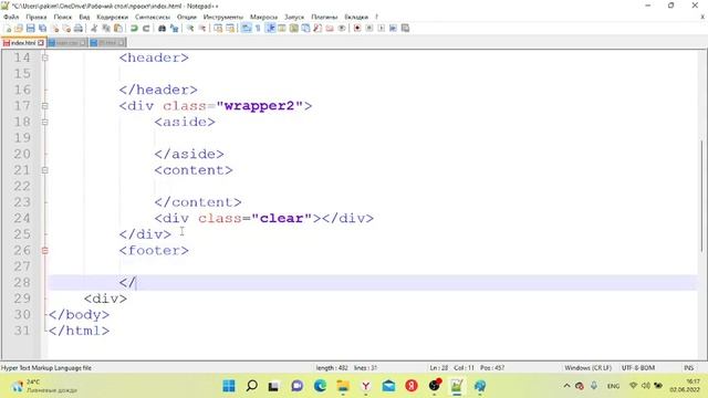 Создание структуры сайта, верстка макета